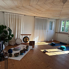 Lass dich von den schwingenden Klängen der Klangschalen in eine tiefe Entspannung tragen – sanft, lichtvoll und sphärisch. Während du bequem liegst, darf dein Körper loslassen, dein Geist zur Ruhe kommen und deine Seele auf Reisen gehen. Die heilenden Vibrationen berühren dich auf allen Ebenen und können dich in tiefe Regeneration, den Thetazustand oder in innere Bilderwelten führen. Klang ist lebendig und wandlungsfähig – darum darf auch jeder Klangraum neu entstehen. So kann es sein, dass wir: • weiterhin den Klangschalen, dem Gong lauschen • eine Trommelreise machen – begleitet von meiner Stimme und Schamanentrommel • einen Trommelheilkreis erleben – mit gemeinsamem Trommeln, Rasseln oder Lauschen • Mantras singen – begleitet von Gitarre oder Shrutibox oder all das verbinden Die Ausrichtung bleibt stets klar: Ein geschützter Raum für Klang, Schwingung und innere Bewegung. Daten 2025: Samstags, jeweils 16.30 – ca. 17.30 Uhr • 22. November - AUSGEBUCHT • 20. Dezember (Yule-Vortag - Zeit der Innenschau) Daten 2026: Samstags, jeweils 16.30 – ca. 17.30 Uhr • 24. Januar • 21. Februar • 28. März • 18. April • 23. Mai Ort: Raum zur Mitte, Im Chratz 6, Grüningen (Parkplätze beim Gemeindehaus oder Restaurant Bahnhöfli) Mitbringen: bequeme Kleidung, Socken, evtl. kleines Kissen für den Kopf (es hat Sitzkissen, Yogamatten & Decken vor Ort) Im Blogbeitrag mit gleichnamigen Titel, vom 28. Mai 25, erzähle ich ausführlicher über die Entstehung dieses Angebotes . Der Abend kostet CHF 25.- pro Person, das ist sehr wenig für das Angebot, daher darf selbstverständlich bei Möglichkeit und Wunsch auch mehr ins Kässeli gelegt werden. Anmeldungen sind verbindlich, Stornierungsfrist: 24h